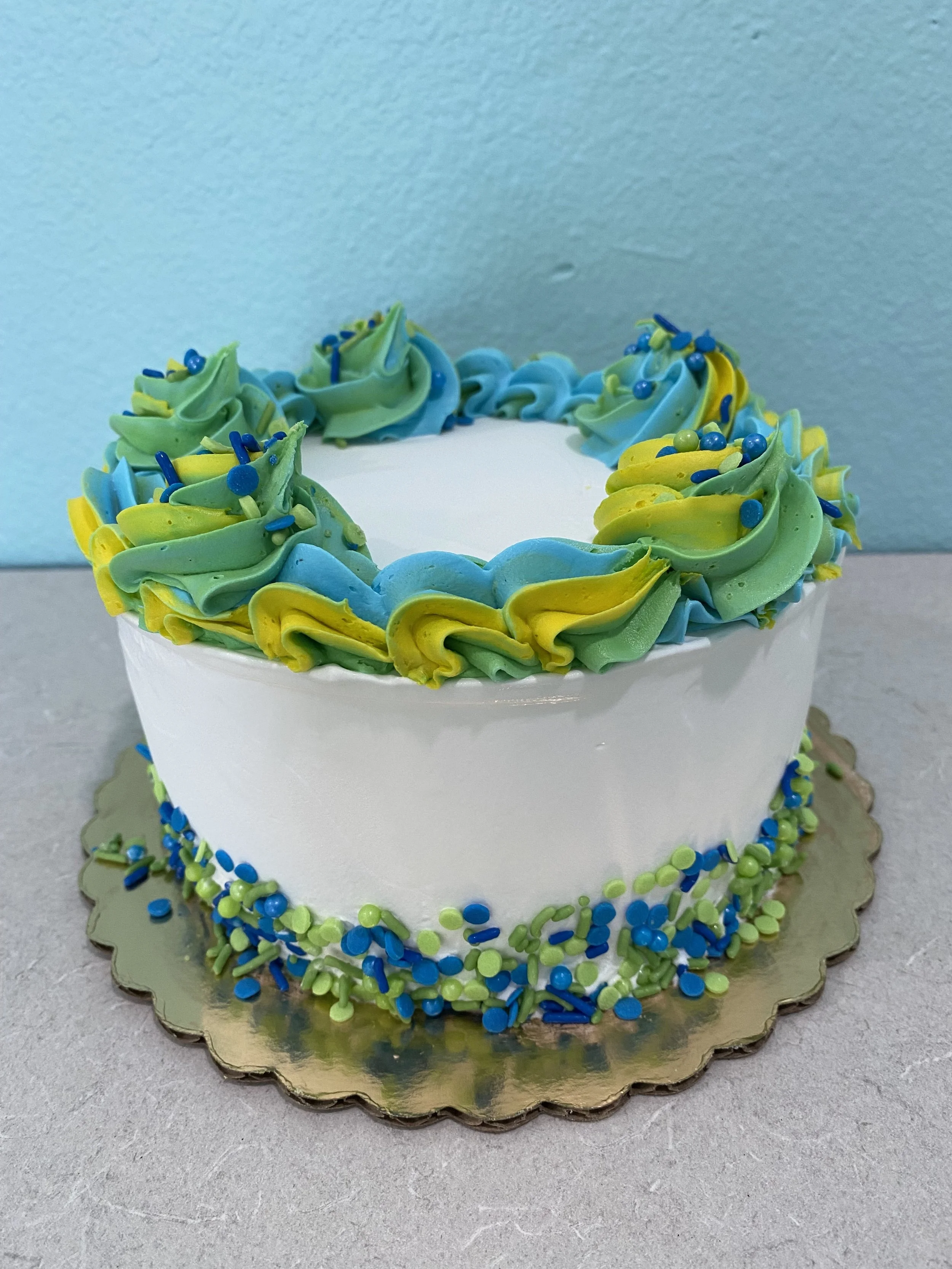We serve fresh cakes on hand at all times for grab-n-go situations. We will rotate our flavors and our decorations throughout the season so we can offer more options, however, we can take orders for any of the flavors at any time and for any occasion, we just ask to be notified in advance. Available in small and large sizes or custom sizes. All photos are examples of cakes we have done in the past. Not all cakes will be decorated the same as the decorators have creative freedom. If there is a certain way you would like one decorated, please let us know while ordering.